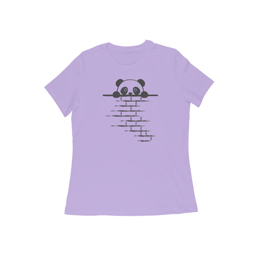 Women Classic Fit Graphic T-shirt - Panda - Lavender