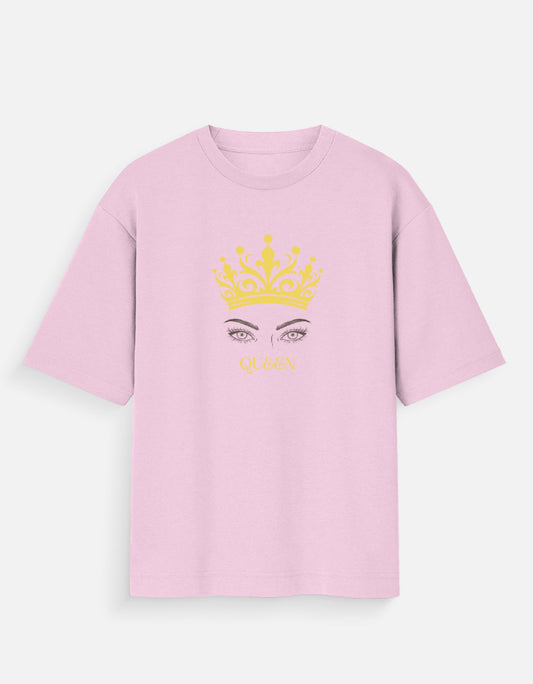 Women Oversized Cotton Printed T-shirt - Beach Vibes - Baby Pink